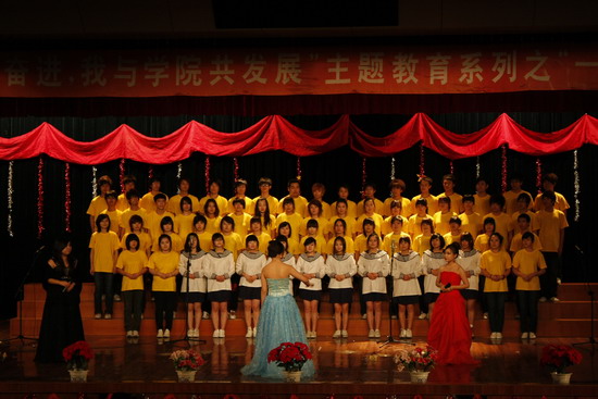 随着院合唱团的一首《四渡赤水出奇兵》,拉开了此次红歌会的序幕。歌曲《龙的梦想》用激昂的歌声表现出为实现梦想克服重重困苦,推动历史进步车轮的决心与毅力;《国家》用豪迈的歌声唱响对祖国的信仰和人民的热爱;《爱我中华》用五彩纷呈的五十六个民族亮起一道永不消散的中国红,点燃每个人心中爱国的熊熊火炬……十二支代表队的精彩演出无一不唱出了祖国的伟大、民族的富强。吴院长为我们演唱的《骏马奔驰保边疆》,浑厚的嗓音、完美的演唱把现场带入了沸腾的新高潮。晚会随着院舞蹈社的一支自编舞蹈《战魂》圆满落下帷幕。经过近三小时的比赛,院合唱团被评为团体一等奖;语言系、08经管系被评为团体二等奖;08艺术系、07信息系被评为团体三等奖;付佩琳、赵慧中玉被评为最佳指挥。