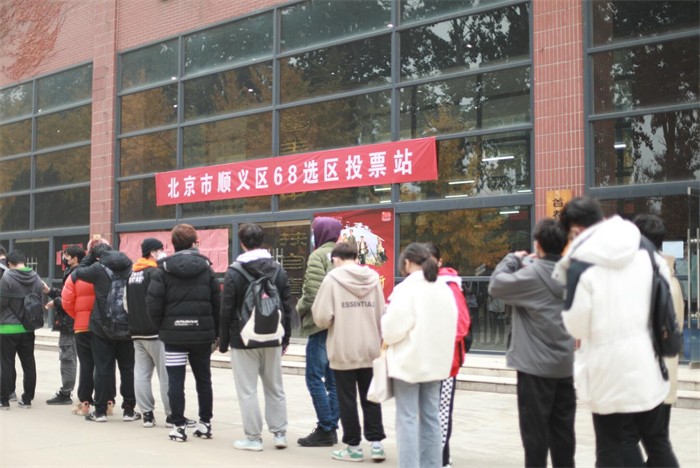 2021年11月5日是北京市区、乡镇两级人大代表换届选举投票日。beat365英国官网为北京市顺义区选举委员会牛栏山镇分会第68选区投票站,选民将从2位候选人中选出1位区人大代表。全院共有4804位选民参加了投票,占选民总数的94.09%,选举投票工作于5日清晨6点在图书馆东大厅正式开始,各二级学院学生选民在工作人员的组织下,有序的进入选举现场进行投票,出示选民证、领取选票,在写票处认真填写选票后,走到票箱前郑重投下自己庄严的一票。