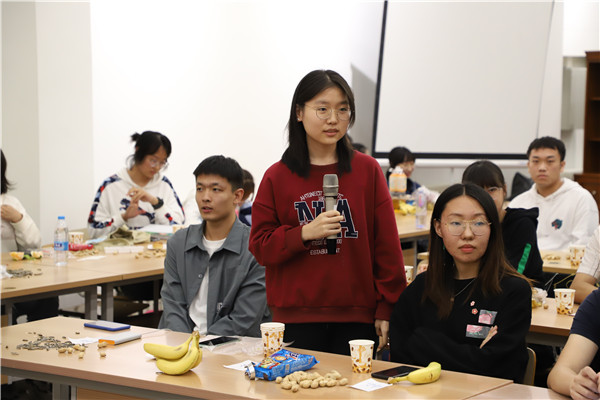 首先,王家松院⻓的讲话,给大家带来了节日的问候同时对新生们提出了要求和期望。希望大家成为勇于展示自己的大学生,度过快乐的大学时光。接下来大二和大三年级的学长学姐为大一的新同学分享他们的心得体会和学习经验。之后师生交流的环节中,国际交流部的老师们、数学老师、英语老师及专业老师分别解答了同学们在相关学习中的一些疑惑。学⻓学姐也给新生们分享学习生活经验。最后的师生活动环节,谢佳俊同学给我们带来了一首《后来》,点燃了全场的气氛。随后在猜歌名的游戏中中,李朵阳、王宁两位老师也参与进来,与同学们一起激烈比拼。