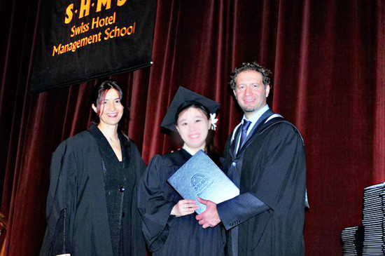 臧雪银:说来很不一样,我从小看的小说不是四大名著,而是包法利夫人,呼啸山庄等,所以从小我就很向往欧洲那种宫廷贵族般的生活,而后又因为一部名为《情定大饭店》的韩剧,想要学习酒店管理,因为我喜欢那种可以服务于人的感觉,而瑞士无疑是最好的选择。我也一直觉得自己很幸运,可以选择自己喜欢的生活方式。但是我要提醒一些同学,我这样做并不就是对的,如果你们最终要选择回国,必须要跟国内的实际情况结合下自己的喜好,现实问题还需要认真考虑。