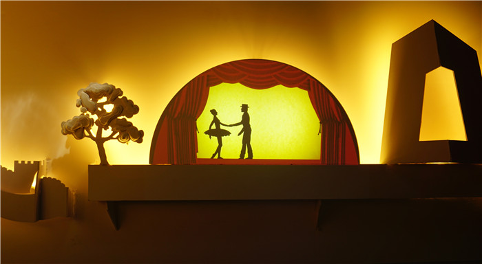《北京街建筑纸雕》是利用北京著名的标志性建筑结合纸雕的艺术形式做出的光影装置,该光影装置设有红外感应灯光与投影,远观时可以观看投影内容,靠近时会有灯光的变化。