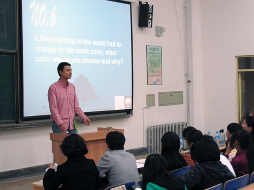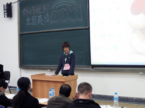 比赛由命题演讲、即兴演讲和回答问题3个环节组成,比赛题目采用大赛提供的题目:___ is my top concern。选手首先进行3分钟的主题演讲,之后是选题即兴演讲。演讲结束后外籍教师就演讲内容提问,对选手的临场应变能力进行考察。选手们从友谊、亲情、未来等方面入手,畅所欲言,尽情发挥,比赛现场高潮迭起。选手们流利的英语表达和敏捷的思维能力博得了现场观众和评委的热烈掌声。