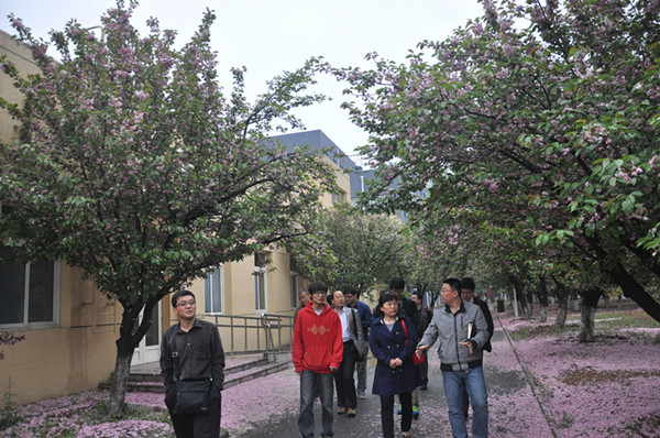 座谈交流会结束后,招生办公室老师与同学们陪同校长一行参观了校园,正值四月樱花盛开,美丽的校园环境使来宾们不断驻足赞叹。