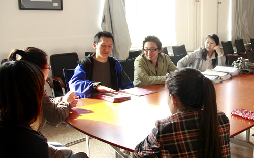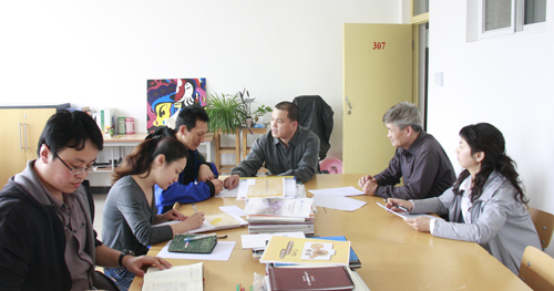 肖勇教授首先出席了艺术设计专业视传方向教学计划研讨会。艺术设计系责任教授郭津生老师介绍了教学计划和结构安排,并就工作室课程进行了重点说明。艺术设计系林子杰主任介绍了基础课程的课程体系结构、课程设计创新理念、课程改革阶段性成果和经验。肖勇教授肯定了专业培养方案、教学计划及课程设置的科学性、合理性,并结合中央美术学院的基础课程改革情况,向视觉传达专业全体教师进行了介绍。随后,双方就工作室教学模式进行了探讨,肖勇教授结合中央美院设计学院第七工作室的教学经验提出了多项可行性教学建议。