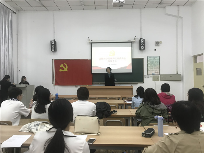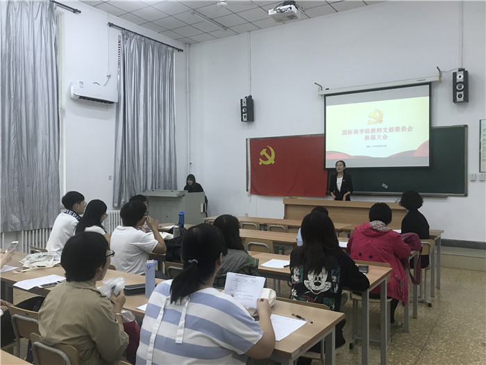 在王兰同志的主持下,换届选举大会正式开始。首先由国际商学院教师党支部换届选举经过宣布选举办法;介绍并通过候选人名单;推选监票人、计票人等议程,通过不记名差额选举方式,最终选举出王兰、任焕妮、王霞三名同志选举成为新一届国际商学院教师党支部委员会成员。