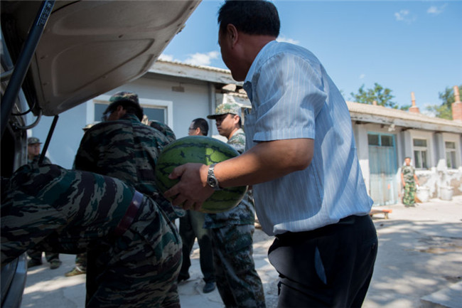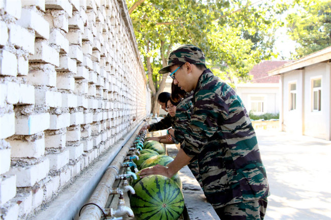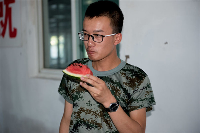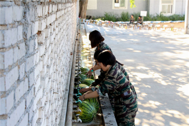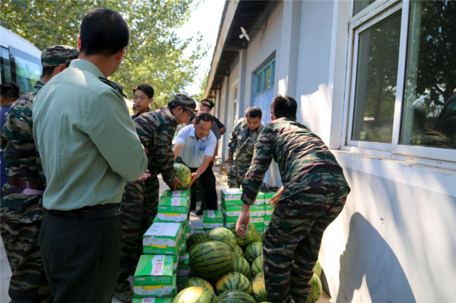 同学们高兴的吃起了慰问团送来的西瓜