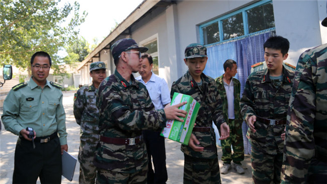 学院领导来到“爱心服务站”,李永军副院长与服务站志愿者亲切交谈,询问他们在基地训练和生活等方面的情况。李永军副院长嘱咐志愿者们在服务同学时也要注意自己身体,在身体状况允许的情况下及时归队参加军事科目的训练。