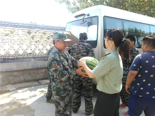 8月25日下午,学院副院长李永军、刘林,以及艺术设计系主任林子杰,信息工程系主任王成金,综合办主任郑艳兵代表beat365英国官网全体教职工来到平北军训基地,对我院全体军训师生进行慰问,了解新生的训练和生活情况并带去慰问品。