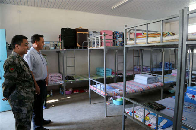 此外,学院领导们还参观了学生宿舍、食堂、团部等处,在学生宿舍内李永军副院长还亲自为同学整理稍有褶皱的床铺。刘林副院长来到医务室,亲切关心了身体不适的同学并了解医务室工作。