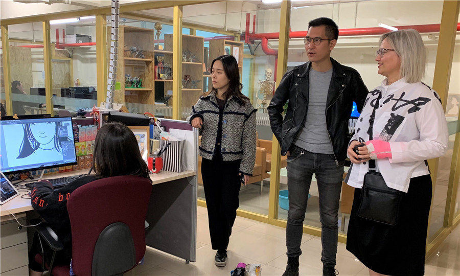 来宾先后参观考察了产品首饰楼、创意工坊、ShowBIM、动画工作室、光影工作室、国际商学院大楼等地,对我院实践教学环境及教学成果给予了高度评价。双方在2+2及3+1双学位合作、研究生、交换生、教师交换授课、资源共享、师资情况等方面进行了讨论,将签署协议并开展更深入的合作。