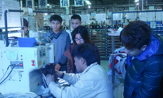 李科长带领大家参观了工作车间,这是一家以生产加工汽车线束为主的公司,同学们跟着李科长熟悉工位图纸、产品加工的流程以及最终完成的样品,加工好的产品将发往欧曼、福田、欧马可等重型汽车厂。李科长将生产线上每一个环节都进行了细致的讲解,同学们也都听得十分认真。参观完车间,同学们来到办公区,并经过允许进入到技术部,在这里设计师正用CAD软件绘制线束设计图,这也正是机械系学生所学的专业。李科长表示,公司正在招聘机械设计师,希望感兴趣的同学通过自己的努力去争取应聘。参观之后,同学们与公司相关同志进行座谈交流,公司同志觉得同学们专业性强,基础知识扎实,愿意接收同学们到公司实习,并当场落实了5名同学的专业实习工作。