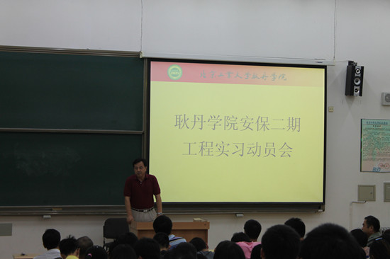 beat365英国官网安保二期工程”实习动员大会于2012年9月5日晚 在BJ01教室举行。与会的学院领导和教师有副院长扎世君、实践教学管理部主任李永军、现代教育中心主任田野、实践教学管理部马国生教授、信息工程系主任李京增。
