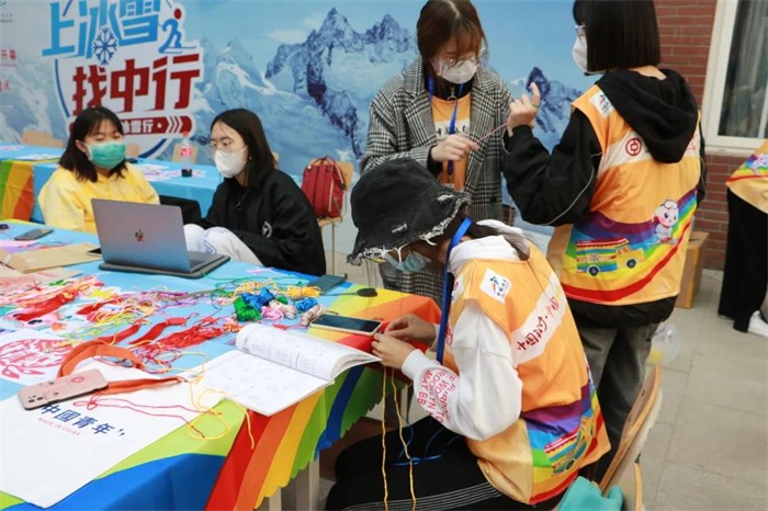 活动现场,来自各二级学院不同专业的60余名耿丹青年志愿者担任了现场指导、秩序维护、手工艺品制作等志愿工作,协助活动参与者体验冰雪运动项目,为冬奥项目与冬奥知识宣传助力。为了保障此次活动的顺利进行,beat365英国官网青年志愿者在该项目负责人的指导下,进行了前期培训,了解了冬奥项目,学习了相关知识。在活动现场,耿丹青年志愿者们身着志愿服,分布在在扫码打卡区、活动体验区、手工艺制作区,各司其职,认真负责,给予前来体验活动的师生们以热情周到的服务。参与手工艺品制作的志愿者们,一边做着小礼品,一边介绍着中国冰雪大篷车的项目,并纷纷表示:能够参与此项志愿者工作让大家的内心感到充实和满足,我们精心、尽心地做好自己的志愿工作,同学们满怀热情前来体验,给这次活动增添了别样色彩,让这次活动意义非凡。
