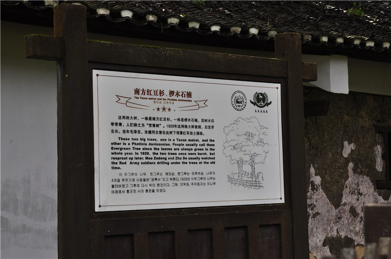 在大井毛泽东旧居屋后有两棵大树,一株红豆杉,一株椤木石楠。当年毛泽东、朱德等经常在树下观看、指导红军操练。据说,1929年2月这两棵树在国民党的大火中被烧枯,到1949年又重新吐芽,并越长越茂盛。1965年毛泽东重上井冈山时,这两棵树又开花结籽了。1976年,毛泽东逝世后,这两棵树再次枯死,经当地文物部门的救治,恰逢党的十一届三中全会召开时,它们竟又枯木逢春,如今已是枝繁叶茂。这两棵树因此被人们称为“感情树”、“常青树”。由于它们的“神奇”经历,来到这里的游客纷纷在树下与之合影。