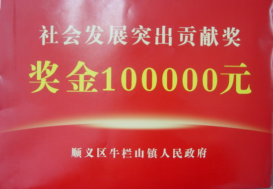 我院被顺义区牛栏山镇政府授予“社会发展突出贡献奖”