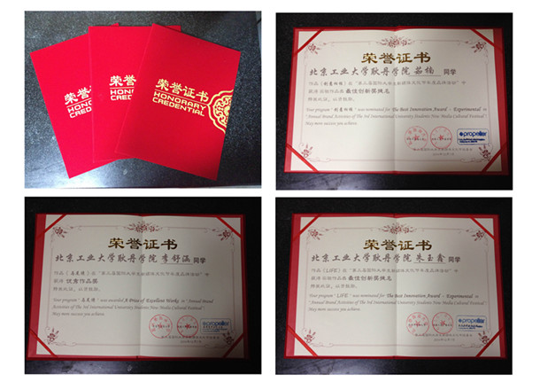 “国际大学生新媒体文化节”由英国普罗派乐卫视、北京人民广播电台、中国教育电视协会高校电视专业委员会主办,每年一届,设有剧情类最佳导演奖、剧情类最佳编剧奖、最佳纪录片奖、实验类最佳创新奖等奖项。本届“国际大学生新媒体文化节”共有美国、英国、法国、中国大陆、香港地区、台湾地区的近百所高校的800余件作品参评。(艺术设计系供稿)
