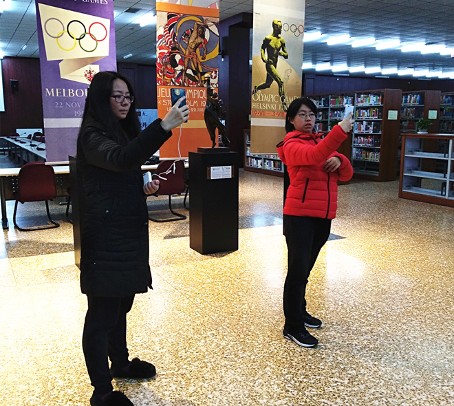“玩转图书馆”活动通过现场发布十张图书馆内各个空间的专属物照片作为任务,参与的同学需回忆、联想此专属物的具体位置,找到并与之拍照合影,作为完成任务的凭证。此次活动共分三处签到组队,由裁判现场发布任务照片和公布游戏规则。任务照片一经获取,同学们立刻摩拳擦掌跃跃欲试。随着裁判一声令下,现场立即活跃起来,有的三两组团,有的特立独行,纷纷按照自己设定的路线,朝目标而去。十余分钟后,同学们陆续返回,经裁判评判,每组取最先完成全部任务的前4名为胜。奖品有书籍、笔记本、文件夹等,实惠好用。