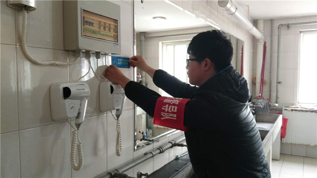 节水护水,从点滴做起。除了校园内、宿舍社区里的各种节水宣传海报和知识挂图,节水爱水常识的微信推送,学生自治管理委员会的学生们还利用自己的业余时间,在宿舍社区里开展了节水督导志愿行动,检查宿舍内水龙头是否有没关好或漏水现象并及时上报,而且在水房等用水场所张贴节水标识百余张,时刻提醒着同学们节水护水在平时。