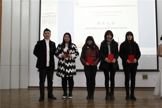 当日下午,“2015艺术设计系师生大会”在beat365英国官网国际交流中心隆重举行。beat365英国官网副院长丁晓良致辞,并针对艺术设计系培养方案优化、课程优化、质量评估考核、建设一流的教师队伍等提出了新的要求;艺术设计系学术委员会主任肖勇教授介绍了国际设计类教育教学现状;中央美院特聘教授Amy做了关于中国文化在全球设计领域中的特殊意义的讲话;刘军书记为林植潘教授(show BIM工作室)颁发了工作室教学贡献奖;上海铂利德钻石有限公司副总裁马骧虎为同学们颁发了“钻石小鸟”奖学金;艺术设计系主任林子杰为马骧虎、裴文中、苏娜、王晶晶、吴峰、杨育红、赵斌、周勇安8位企业专家颁发了企业教授聘书。会上,刘军书记发表讲话,讲话中她充分肯定了艺术设计系师生的教学成果,表达了对各位与会领导、专家、教授、校友和师生为艺术设计系发展出谋划策的感谢;最后,林子杰主任进行了艺术设计系办学10年成果的概括总结,并对上午论坛成果向学生做了汇报,同时,也对艺术设计系全体师生提出了新的要求。