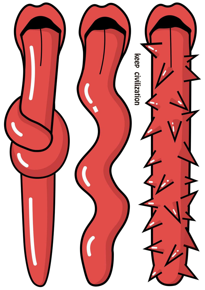 张峻峰同学的社会文化类海报《好好说话》,运用舌头的三种扭曲的形态表现了当今社会人们在说话时的不同腔调,有的人油嘴滑舌,有的人说话带刺,还有的人谎话连篇。张峻峰同学曾获荣誉第九届山东艺术设计大赛银奖;第十八届白金创意国际大学生平面设计大赛优秀奖,“橙艺”杯北京大学生主题海报设计大赛三等奖等。本次参展激发同学们的创作热情,并再次验证了同学们专业能力。