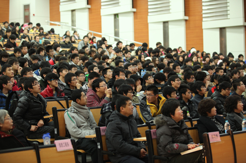 下午,黄健铭博士用中英双语在耿丹讲堂为近800名师生做了《关于国际软件现状和发展趋势》的学术讲座。他用专业详实的数据对国际IT界的发展趋势和市场前景进行了说明,并与大家分享了他在IT界多年的从业履历和经验。黄健铭博士还就同学们在校学习规划以及未来的职业发展提出了建议,他认为成功是能力、态度和兴趣三方面的有机结合,提出了Success = Capability x Attitude x Passion(成功=能力x态度x兴趣)的公式;他建议同学提前做好相应的准备,将来从事自己所感兴趣的职业和岗位。