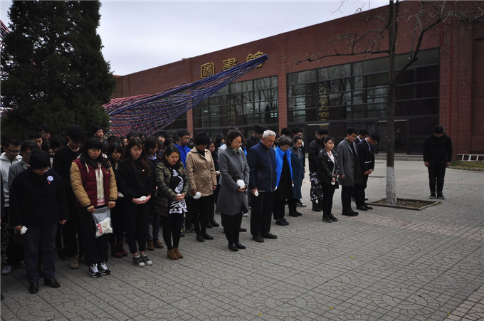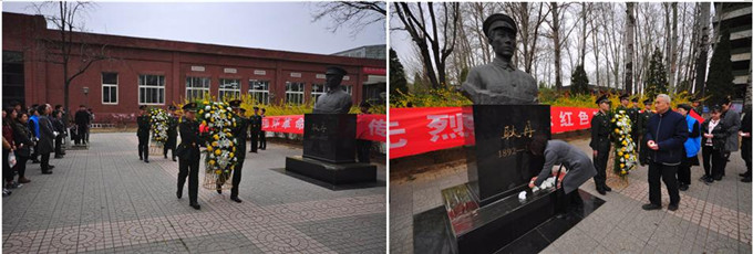 中午12:40,学院领导、师生党员和学生代表近300人来到耿丹烈士铜像前,深切缅怀积极献身于民族独立解放、国家繁荣富强的先辈们。活动在庄严的国歌声中开始,随后我院退伍老兵迈着整齐的步伐向耿丹烈士敬献花篮,全体师生向革命先烈默哀,并敬献自己亲手制作的小白花。缕缕春风,朵朵白花,诉不尽对革命烈士的无限深情,道不尽对烈士英魂的无尽哀思。最后全体党员在耿丹烈士铜像前重温了入党誓词,每一句铿锵有力的誓言都表达出党员们的无限感恩与怀念。
