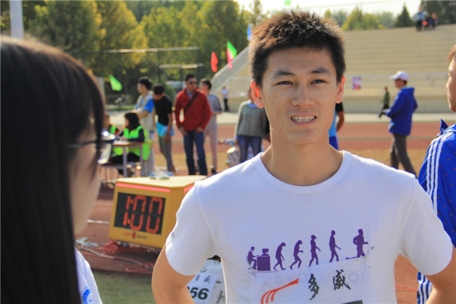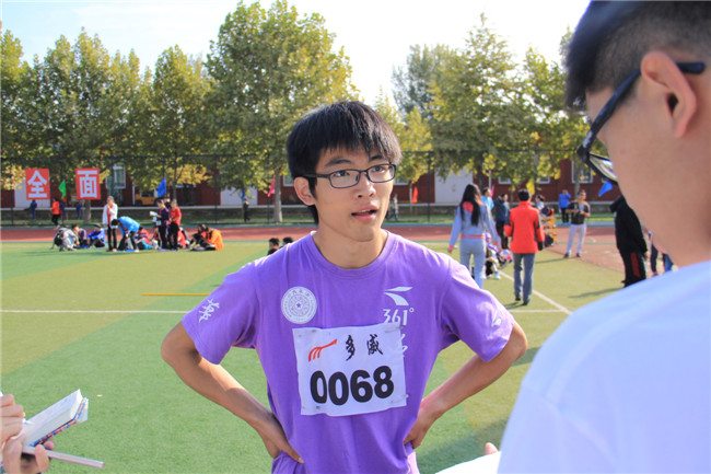 10月17日,11点05分男子3000米乙组随着信号枪打响,运动员们一起冲出了起跑线,我院3000米运动员邵伟,开始便加速摆脱了大集团军,并一直保持到最后,获得第4名的优异成绩。赛后邵伟同学说,这次我突破了自己的最好记录,对自己的成绩还是比较满意的。比赛让我知道了什么是信念,就是队友还有朋友们的支持,让我已最好的状态跑到了最后
