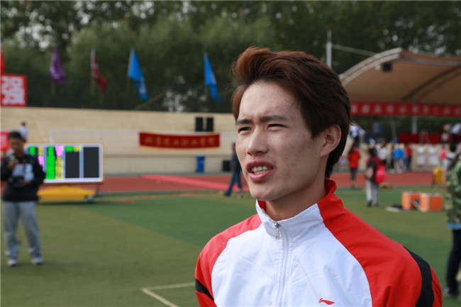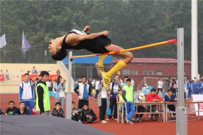 10月17日上午男子跳高决赛激烈角逐后由来自首都经贸大学的刘硕以1.95的出色成绩夺得冠军。刘硕是大三在校学生,正式参与跳高训练仅有三年。今日比赛中刘硕在前两跳中表现非常出色,动作规范到位,顺利取得好成绩。第三跳中刘硕挑战两米零五的高度,但并未挑战成功。刘硕同学对于自己前两跳也较为满意,与以往相比成功率大大提高,均一次性跳过,但对于自己的第三跳并不满意,觉得自己不在状态,并没有达到自己真正的实力。希望其在日后能不断超越自己,取得更为优异的成绩。