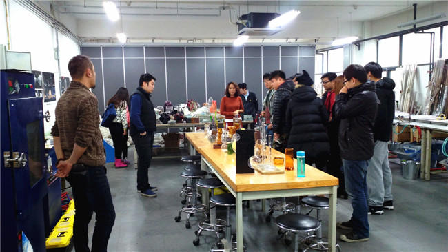耿丹师生参观了玻璃、塑料、木工和金属实验室。工作室作品设计理念新颖,注重综合材质应用,同学们开阔了视野,开拓了思路。双方教师对工作室课程建设、工作思路、工作措施等方面进行了交流。