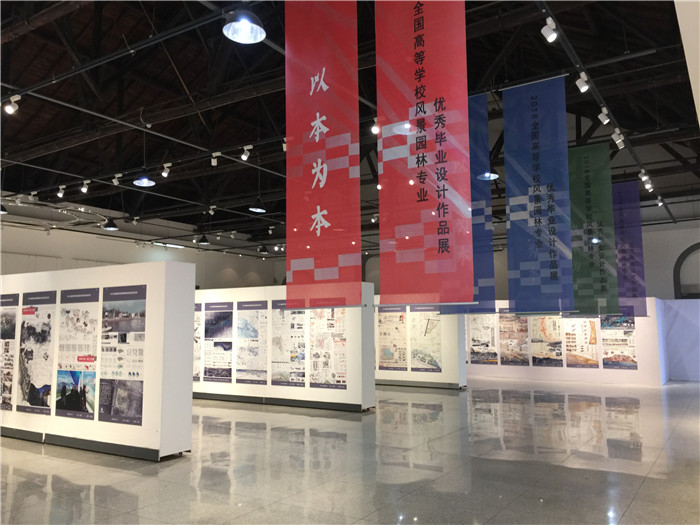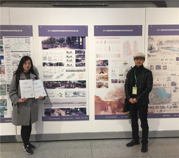 同期在华中农业大学艺术馆举办了全国高等学校风景园林专业优秀毕业设计作品展,共入选了来自全国54所高校的160件优秀毕业作品,内容涉及“遗产保护”“规划设计”“生态修复”“生境营造”等多个方面。我院环境设计专业14级学生杨琳琳的作品《北京西城区延寿街胡同改造》和汪泽宇、舒扬的作品《清华东门景观设计》入选作品展。