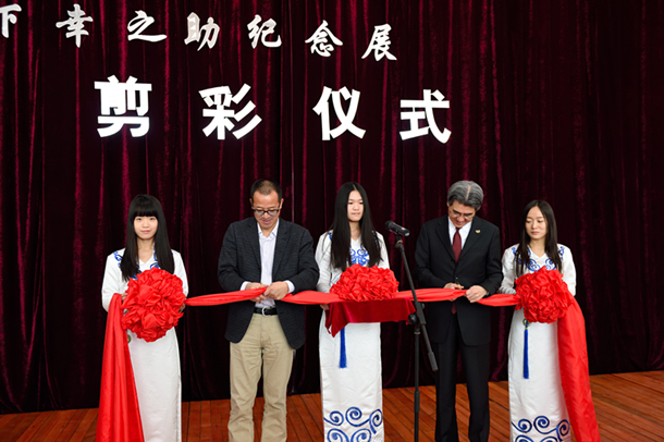 在“松下幸之助纪念展”剪彩仪式上,俞敏洪理事长首先致辞,他表示,松下幸之助先生被日本商界誉为“经营之神”,他的经营理念、管理哲学一直被商业人士奉为经营秘诀,在全世界广泛流传。而他的人格风范与人生哲学,也早已成为世人学习的典范。希望通过展览,使耿丹的师生们能够学习和了解到更多的成功人士自强不息、执着追求的伟大精神,从而树立起正确的人生观和价值观。大泽英俊董事长在发言中引用松下幸之助先生所言:“松下电器是培养人才的公司,同时也制造电器产品。”将培养人才放在首要方面,也显示了这位“经营之神”对教育事业的热衷。发言结束之后,共同为“松下幸之助纪念展”剪彩,并一同观展。活动期间,还对分享松下幸之助先生的创业理念和精彩故事――《松下电器中国事业的掘井人――松下幸之助》一书写读后感优秀的学生进行特别嘉奖。