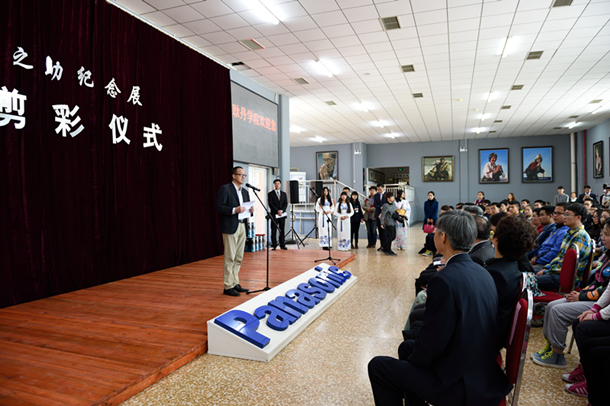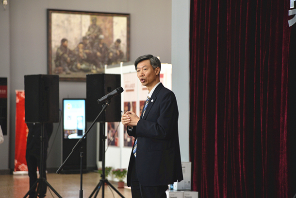 俞敏洪和大泽英俊一同为纪念展剪裁