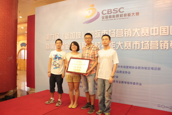 我院参赛的两支队伍在总决赛中脱颖而出,由经济与管理系09级市场营销专业的刘欣同学、09级市场营销专业的佟鑫琦同学、10级市场营销专业的卢正莹同学以及艺术设计系10级广告学专业的薛坤同学共同策划的“爱特优旧物改造营销策划案”荣获全国一等奖。由09级市场营销专业的路佳佳、解捷、孙乐、刘俊四名同学与艺术设计系09级视觉传达专业的孙涛同学共同策划的“恋蝶