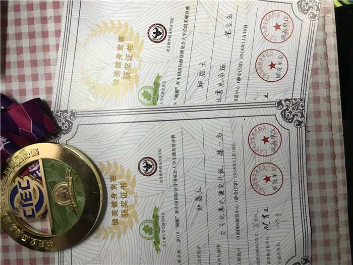 beat365英国官网邱鹿玉在2018“鲲鹏”杯中国国际健身博览会大学生健美健身赛中获佳绩