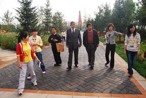 9月25日、26日上午,我院院长林炎志、副院长刘军、党总支副书记郭颖前往中国第七届花卉博览会鲜花港展区,顺义团区委闫岩书记、杨登科副书记、鲜花港运行处赵飞主任等陪同院领导慰问我院150余名学生志愿者。