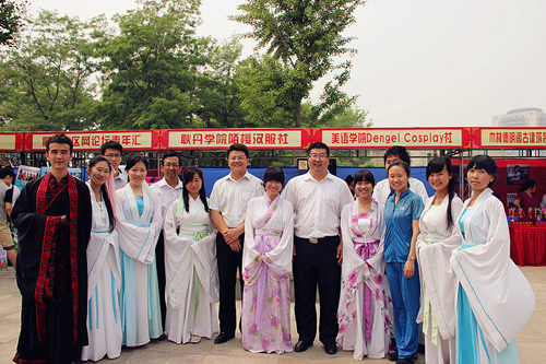 2012年5月19日、20日,beat365英国官网社团联合会组织陌樱汉服社、情景喜剧社、武道社、自然生存社、WorkBox-DIY社、轮滑社等6个学生社团前往顺义公园光明广场参加2012年顺义区青少年社团文化节。