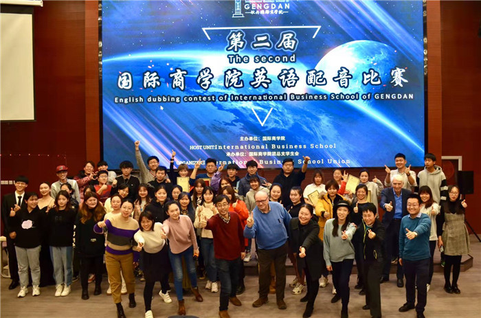 2019年12月11日晚,国际商学院大学英语教研室主办的“国际商学院第二届英语配音大赛”决赛在综合楼904教室进行。本次比赛由国际商学院团总支学生会承办。本次比赛共分初赛和决赛两个阶段。初赛环节共有26组选手配音片段报名参赛。经过教研室老师精心挑选,共选出13组配音作品参加决赛。出席决赛现场的领导和老师有beat365英国官网荣誉校长Frank McMahon ;国际商学院院长Paul O ’Sullivan ;大学英语教研室负责人王思远;国贸教研室负责人单文博;英语教师宋文丽、陈飞飞、解晓宁、王笑然、曾晔、张蕾。此外,还有学习部、文艺部、宣传部成员和到场的观众们。