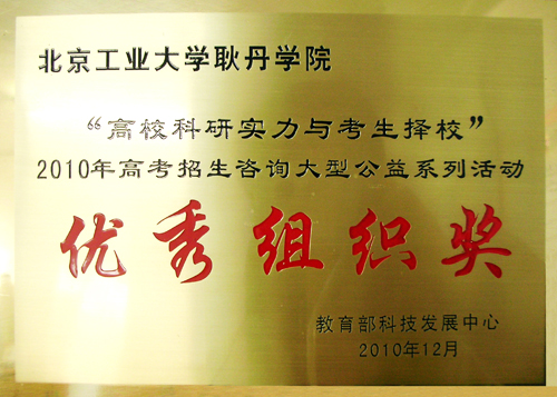 在教育部科技发展中心主办,中国教育和科研计算机网、中国教育在线承办的“‘高校科研实力与考生择校’ 2010年高考招生咨询大型公益系列活动”中,我院荣获“优秀组织奖”。