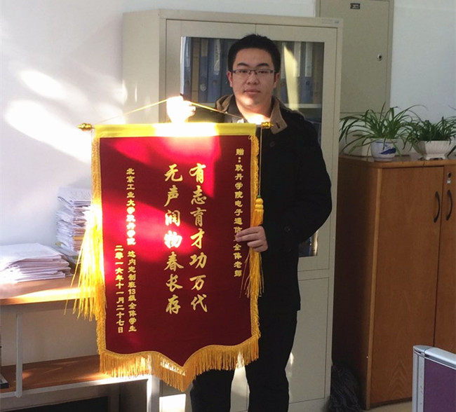 11月28日,我院2013级电子专业蒙健鐾学代表达内时代科技集团有限公司北方基地和参加培训的18位学生向信息工程系全体教师赠送书有“有志育才功万代,无声润物春长存”的锦旗,以此表达对学校给学生提供实习培训机会和辛勤培育的谢意。