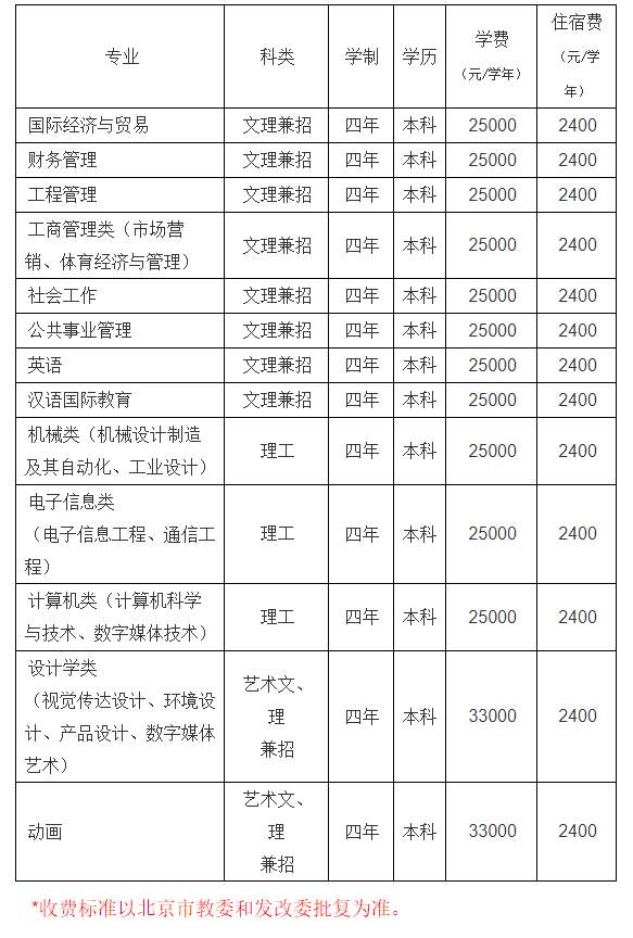 2015级学生各专业学费及住宿费标准公示