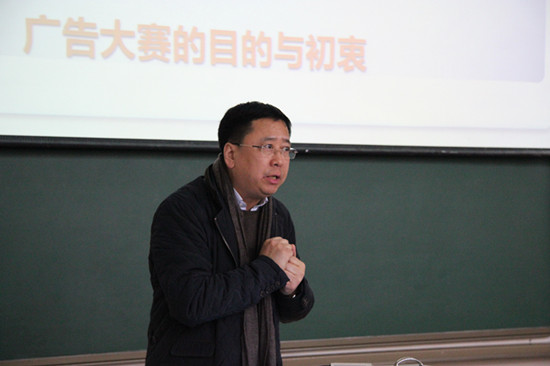 3月5日下午,艺术设计系广告学专业客座教授―中国传媒大学张翔教授在BJ10举办了题目为“广告策划竞赛的组织与训练”的讲座。艺术设计系顾问郭津生教授,广告学研究室负责人孔昭林教授,视觉传达专业负责人秦旭萍老师及广告学、视觉传达专业2011级全体同学共同参加了本次讲座。