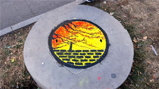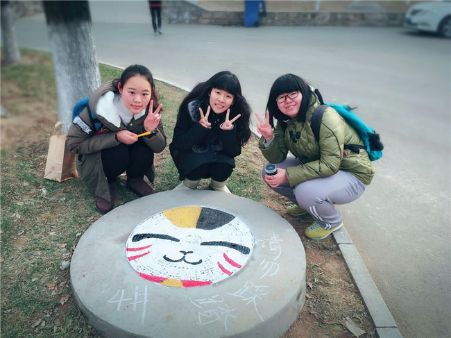我院学生自管会举办“井上添画”井盖彩绘活动