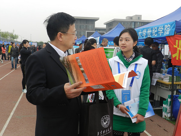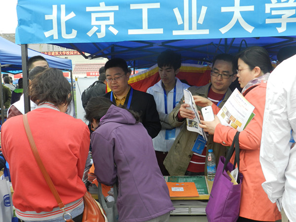 4月19日,今年北京最大一场高招咨询会在北京建筑大学大兴校区召开,百所高校为考生和家长提供了关于招生计划、录取政策等的现场咨询,当日有大约5万多人参加了咨询会。我院领导甘德安、刘军、郭颖、刘林、各教学系主任和相关部门招生咨询人员、已毕业的校友们共30多人参加。