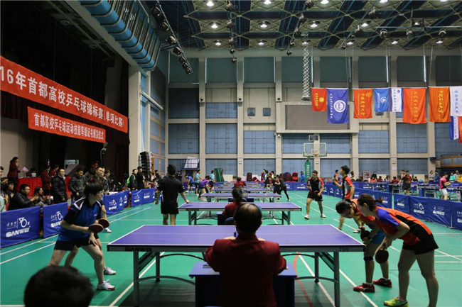 为期两天的2016年首都高校乒乓球锦标赛(单项比赛)近日在北方工业大学体育馆举行,来自首都56所高校的513名学生运动员参加比赛。本次比赛赛制全部为淘汰赛,每场3局2胜。