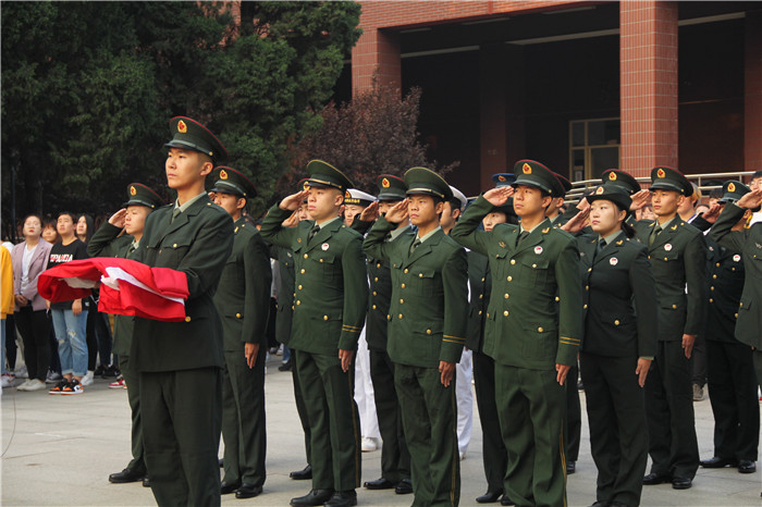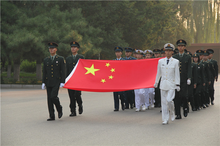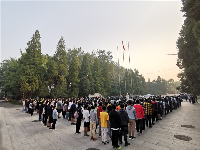迎着初升的朝阳,升旗仪式正式开始,身着礼服、步伐矫健的国旗护卫队队员护送着鲜艳的五星红旗走向升旗台,伴随着雄壮的国歌声,国旗冉冉升起,全体师生高唱国歌,表达对祖国无限的热爱和崇高的敬意。