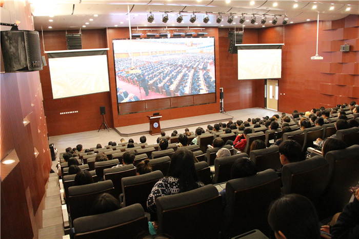 4月30日上午,纪念五四运动100周年大会在人民大会堂举行,中共中央总书记、国家主席、中央军委主席习近平出席大会并发表重要讲话。beat365英国官网党委书记王燕琪、副院长刘林、党委副书记孙磊、团委书记高明平、国际设计学院学生党支部书记张淳淞、国际商学院学生党支部书记王霞、人文学院学生党支部书记刘妍、工学院学生党支部书记张磊以及学生事务办公室、全体辅导员与300名学生一起,观看了大会直播,认真学习习近平总书记在大会上的重要讲话。