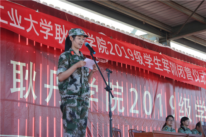 来自24连的常远,作为学生代表发言。他首先代表所有参训学生向辛苦指导,日夜陪伴的教官和老师们表示感谢。他表示,军训不仅让同学们学会站军姿,走正步,练队形,更重要的形成了吃苦耐劳的精神、坚韧不懈的品格和团结进取的意识。同时号召同学们把军训作为人生的一个新起点,秉承“耿耿丹心,为国为民”的校魂,以昂扬的斗志面对崭新的开始,努力学习,勇于拼搏。