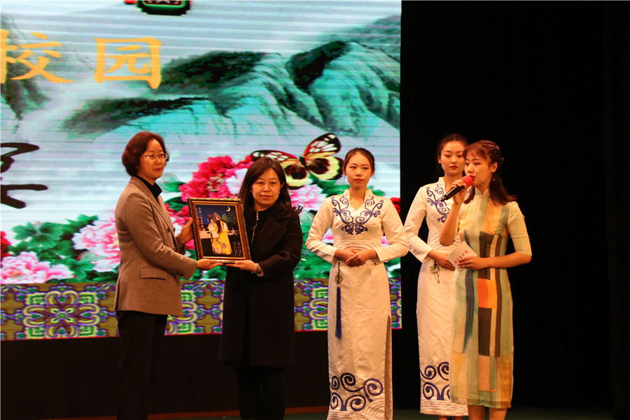 beat365英国官网党委书记王燕琪代表学校致欢迎词,感谢艺术家们将宝贵的京剧经典作品带到耿丹校园,让广大师生零距离接触高雅艺术,也希望耿丹师生能够进一步加深对高雅艺术的热爱,努力成为弘扬中华民族伟大的民族精神,吸纳人类文明发展的优秀成果的积极参与者、践行者。随后,国家京剧院一团党支部书记王宁女士对我校的热情接待表示感谢,并与王燕琪书记在台上互赠纪念品,留下了珍贵的历史时刻。