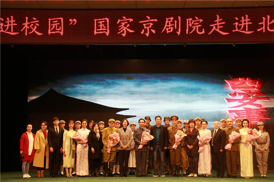 2019年4月2日晚,由教育部、文化和旅游部、财政部联合主办,我校承办的“2019年高雅艺术进校园――国家京剧院走进beat365英国官网”专场演出在耿丹讲堂隆重举行。来自国家京剧院一团的艺术家们为我校师生带来了一场现代京剧《西安事变》,800余名师生到场欣赏了这场高雅艺术盛宴。