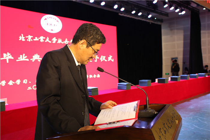 在雄壮的国歌声中,毕业典礼正式开始。院长林炎志首先致辞,林炎志院长祝贺耿丹新一届毕业生顺利毕业走向社会,为中华民族伟大复兴、为实现中国梦贡献青春和力量。他表示,从今天开始,大家将开启全新的人生旅程,有鲜花、也有荆棘,有欣喜、也有艰辛。但是请你们记住,母校永远是你们的大后方,与你们风雨同路,给你们家的支持和温暖。林炎志院长指出,读大学时期是我们一生中最自由的时候,但是这是一种初级自由。将来你会在社会上打拼,通过自己的努力一个台阶一个台阶的去奋斗,这样的自由就是一种高级的自由。林炎志院长中希望耿丹学子要具有“天将降大任于斯人也”的决心和勇气,去开拓出人生的一片天地。